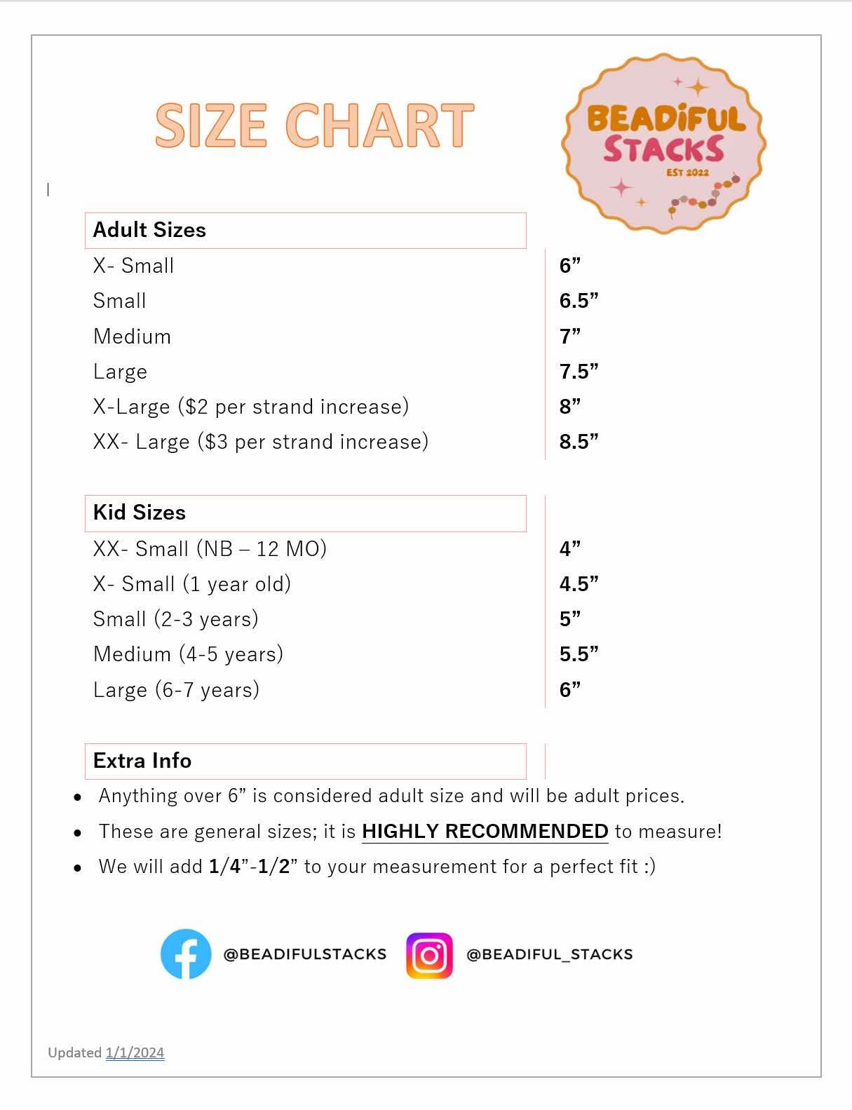 Customize your own gold or silver beaded bracelet! Add your name, favorite bible verse, your child’s birthdate, your word of the year, and more! These gold bracelets are made out of our high quality, long lasting, 14K Gold Plated beads. The silver bracelets are made of our high quality silver plated beads. Enjoy these bracelets for yourself or give as a meaningful gift!