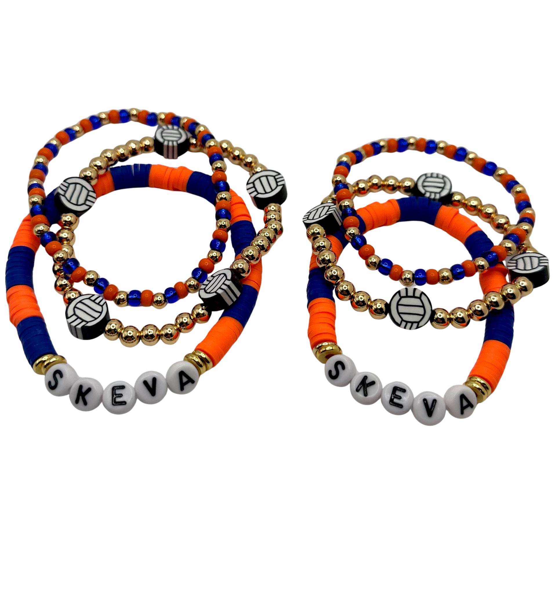 Rep your club colors with our custom sports bracelets! Whether you’re cheering from the stands, repping your team at events, or surprising your athlete’s or coach, these hand-strung bracelets are the perfect way to show support for your club. Mixed with high-quality gold or silver beads and personalized with your club name, athlete #, Coach’s name, etc — they’re the ultimate mix of spirit and style. Perfect for game day, fundraisers, or just everyday pride!
