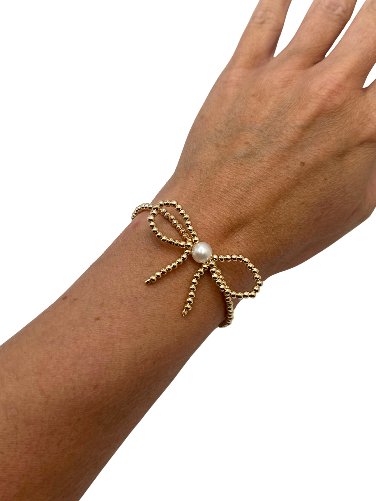 Say hello to your new favorite piece of arm candy! This bracelet is giving golden hour vibes with its shiny 3MM 14k gold plated beads and the cutest little bow front and center. It’s sweet, sparkly, and just the right amount of girly. Wear it solo for a hint of shimmer or stack it with your faves—because more is more, right? Made with our new high quality, long lasting 14K Gold Plated beads.
